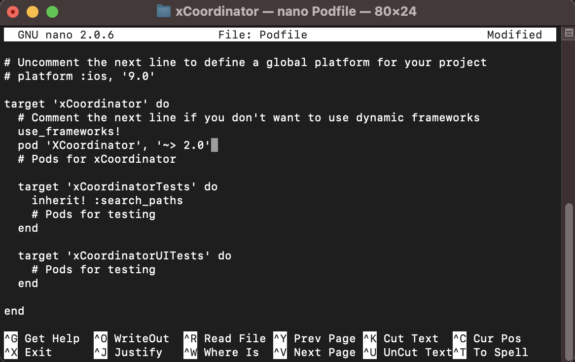 pod '라이브러리명' 형식으로 작성해주세요저는 XCoordinator 라이브러리를 다운받도록 하겠습니다