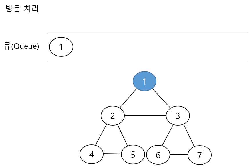 1. 큐에서 하나의 노드를 꺼냅니다. (방문 처리)